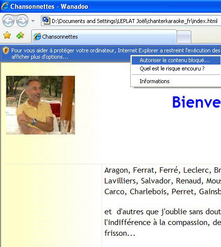 défaut Internet Explorer bloque les Ctrl Active X, car ils peuvent être malveillants et